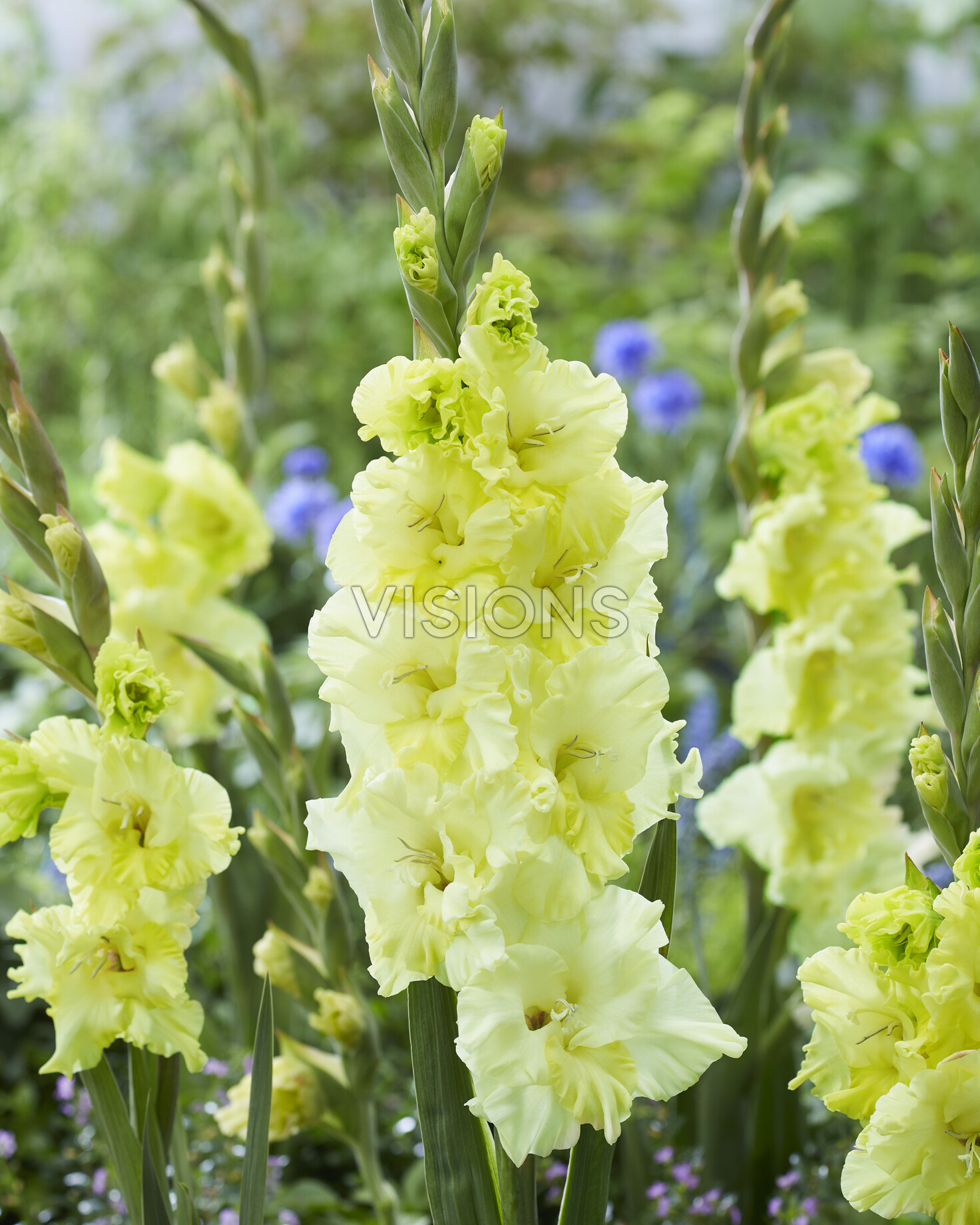 Happy Touch gladiolus, with curvy and graceful flowers standing 60-80 cm tall and strong. A bee magnet in a pale yellow shade, it adds a touch of happiness to your garden with its graceful blooms.